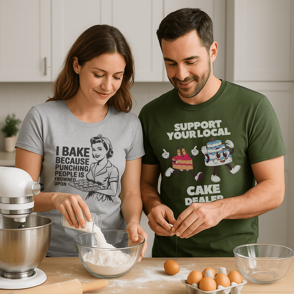 Baking Threads was born from a passion for baking and a love of creative design. Our goal is to celebrate the joy of baking in all its forms—through fun, witty puns and eye-catching graphics. Our tees are made for bakers who love to express themselves and spread a little happiness.